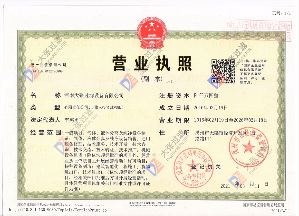 2020年9月9日——河南大張過(guò)濾設(shè)備有限公司榮獲“高新技術(shù)企業(yè)”證書(shū)