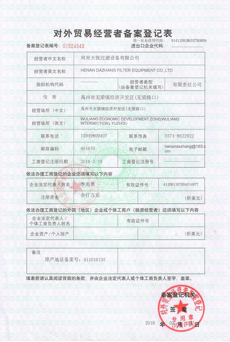 河南大張過濾設(shè)備有限公司位于河南省禹州市無梁鎮(zhèn)無梁經(jīng)濟開發(fā)區(qū)(無梁路口),注冊資金6000萬元,占地面積202畝,廠房面積70000㎡,投資1.5億元,是集生產(chǎn)、制造、科研、銷售、國際貿(mào)易為一體的綜合性科技型企業(yè)。