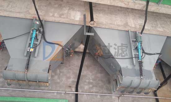 壓濾機(jī)過濾完成后,可將濾餅卸落至配套的儲泥斗,便于集中裝運(yùn)。泥斗的大小可以根據(jù)壓濾機(jī)型號和客戶要求定做,打開方式分為電動和氣動兩種。